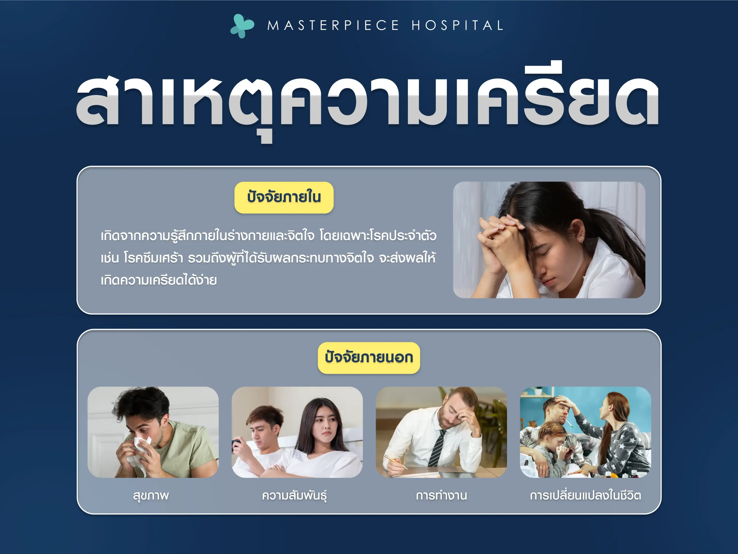 สาเหตุที่ส่งผลให้เกิดความเครียด เกิดจาก 2 ปัจจัย ได้แก่