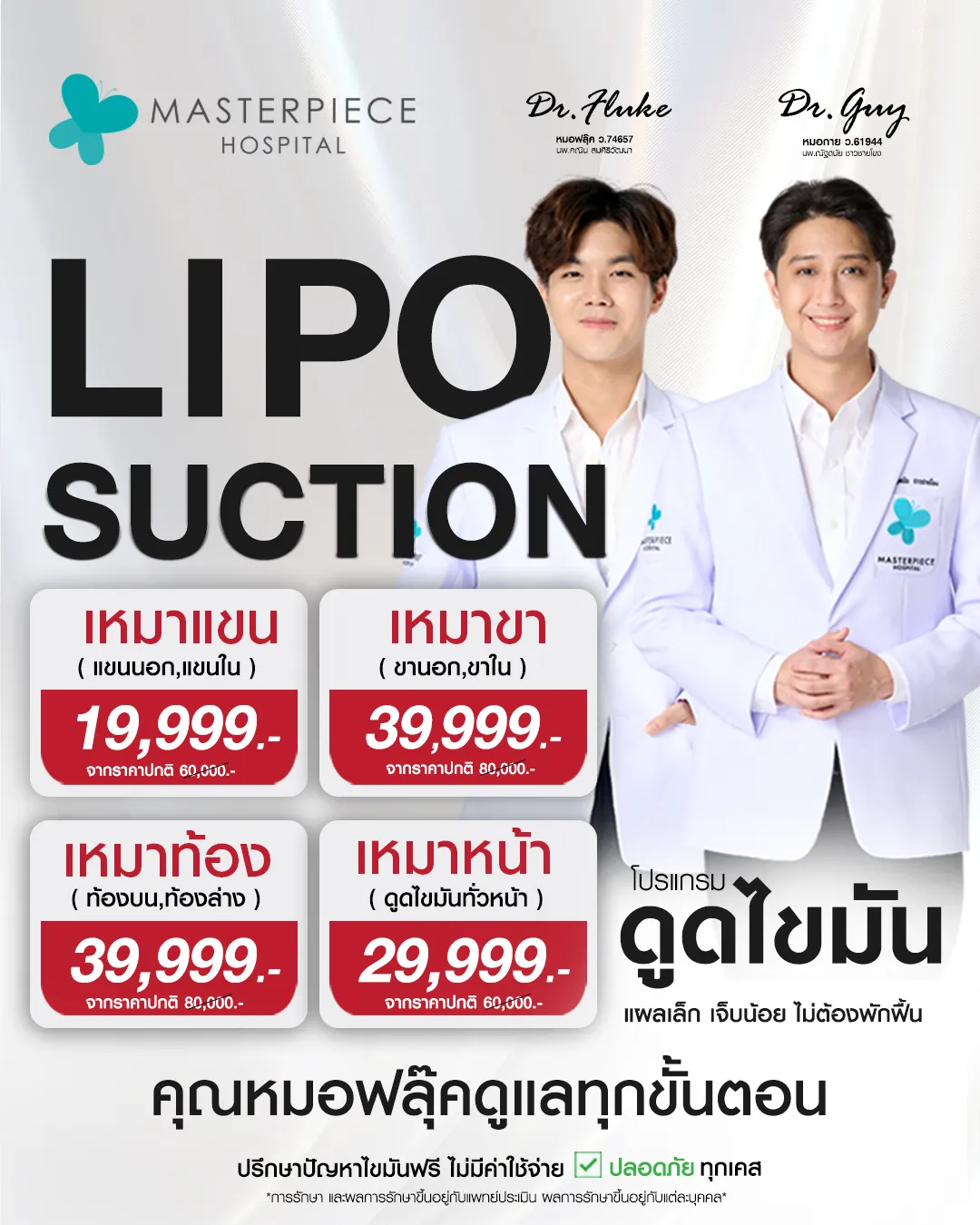 เป็นยังไงกันบ้างคะ สำหรับประเด็นหลัก ๆ บทความเกี่ยวกับการดูดไขมัน อ่านจบแล้วร้องอ๋อกันมากขึ้นรึเปล่า? เจอที่ไหนเคลมหนักว่าดูดแล้วไม่กลับมามีไขมันสะสมอีก ก็จับโป๊ะเค้าไว้ให้ดีเลยค่ะ อย่าเผลอใจไปกับ Promotion of the month จนขาดสติ! เจ็บตัวเสียเงินทั้งที อย่าเอาแค่รอยแผลเป็น (เกือบ) ดีมาแปะไว้ที่ตัวนะคะ