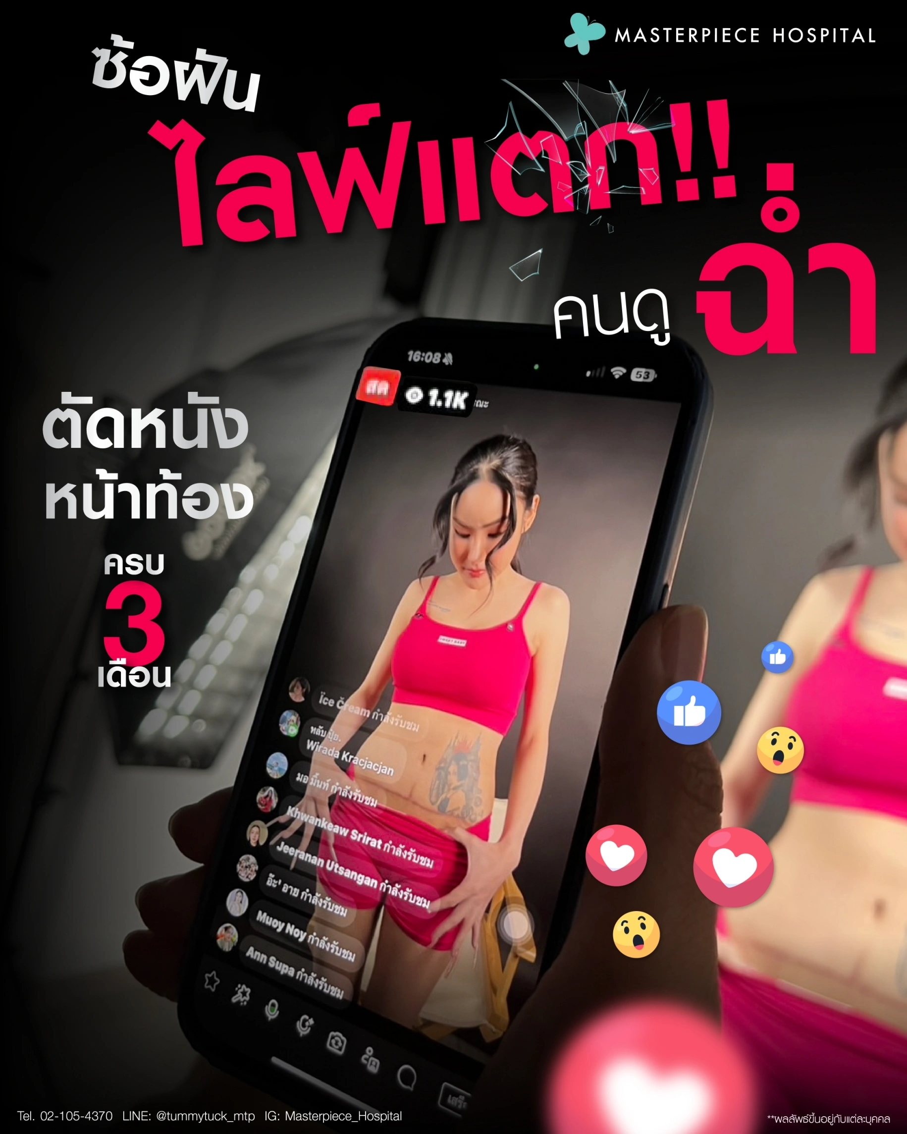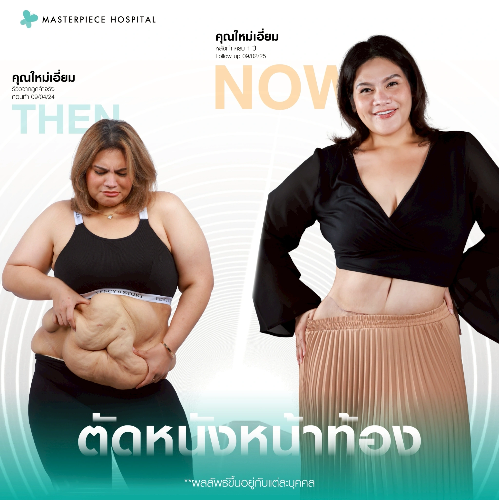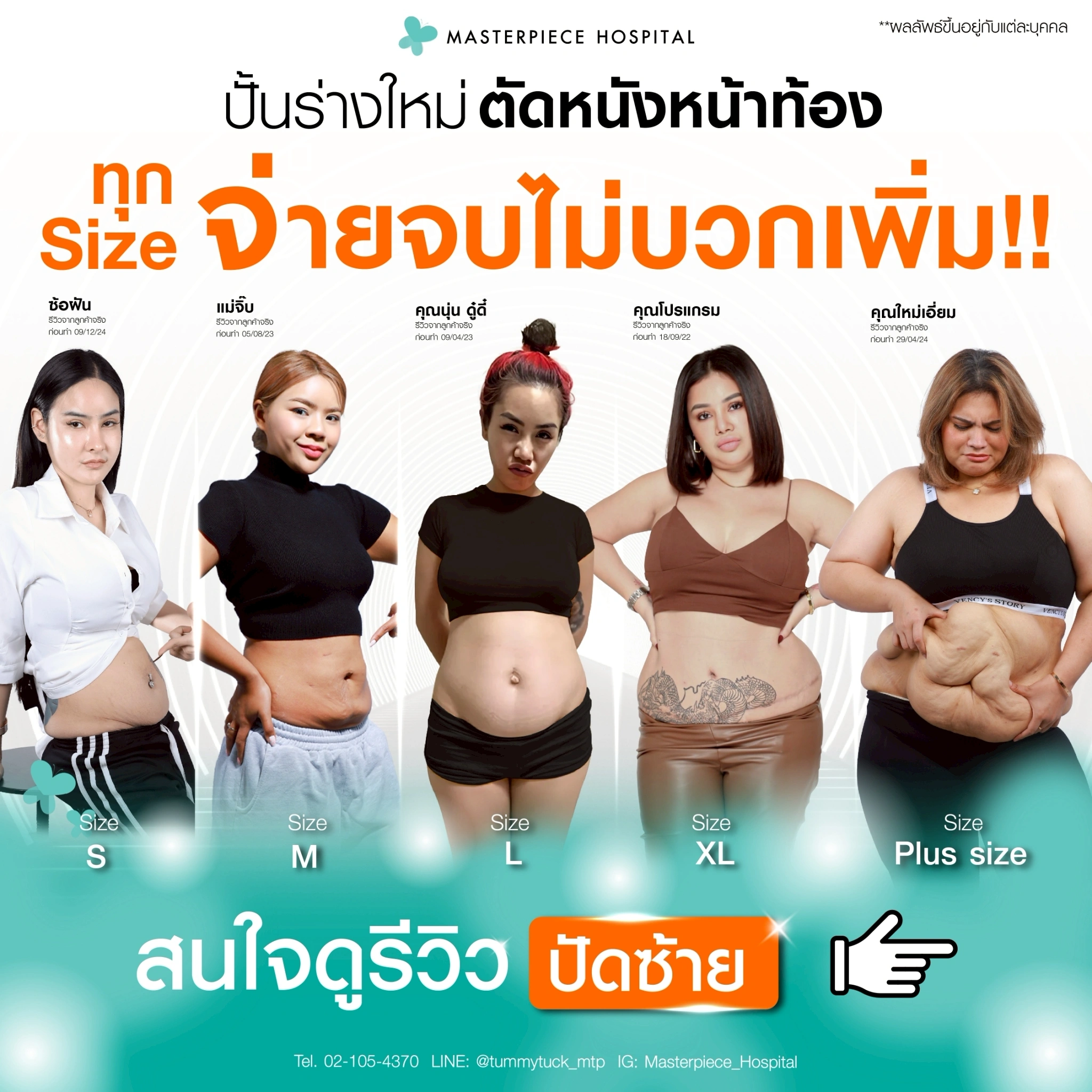 โรงพยาบาลมาสเตอร์พีช มอบความมั่นใจให้คุณโบกมือลาปัญหาหน้าท้องย้วย หย่อนคล้อย ด้วยเทคนิคการตัดหนังหน้าท้อง Diamond Line Waist Lift ดูแลอย่างใกล้ชิด โดยศัลยแพทย์เฉพาะทางด้านการศัลยกรรมตัดหนังหน้าท้อง ติดต่อเพื่อปรึกษาแพทย์ฟรีวันนี้!