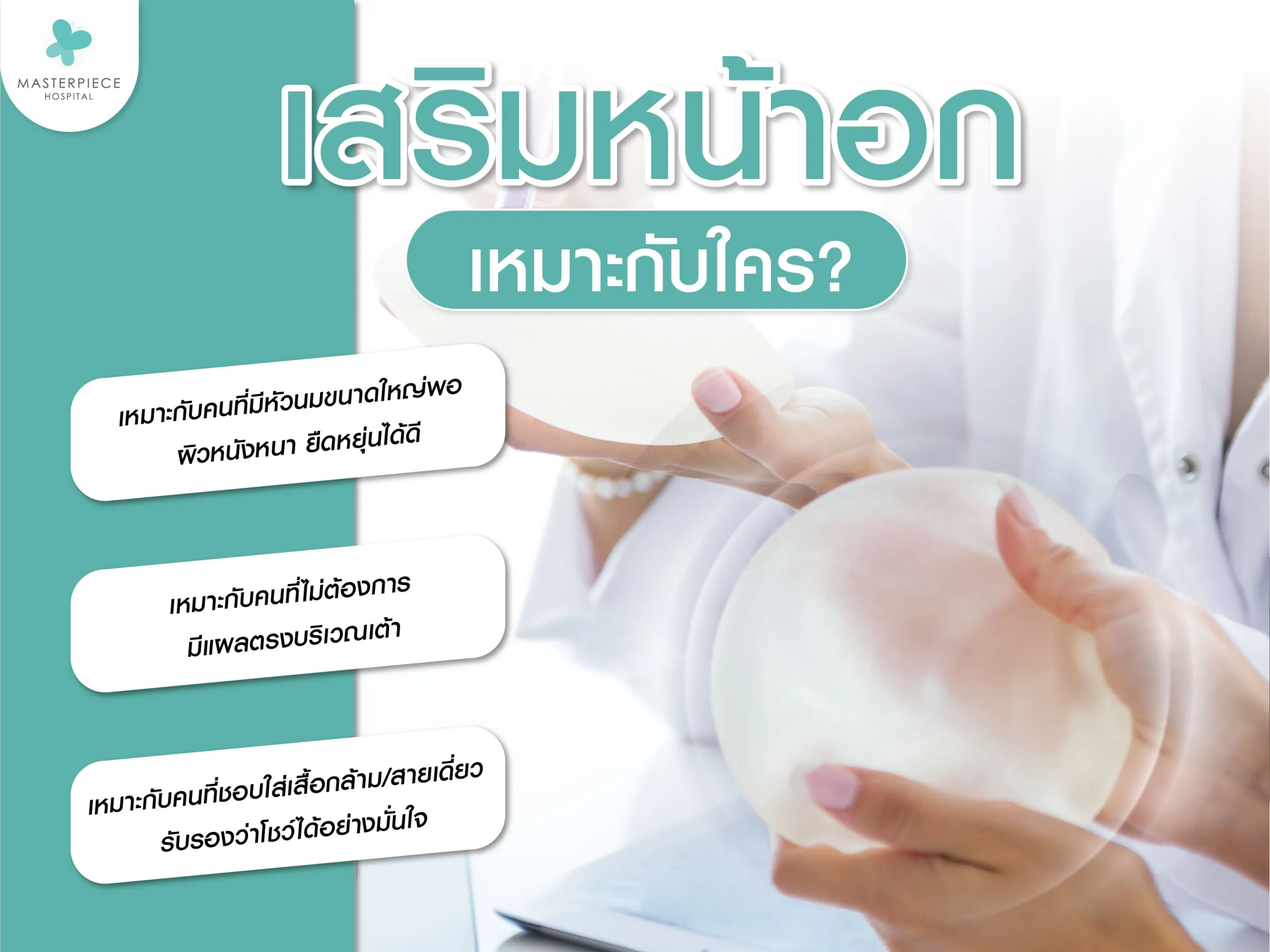 - เหมาะกับคนที่ไม่ต้องการมีแผลตรงบริเวณเต้า