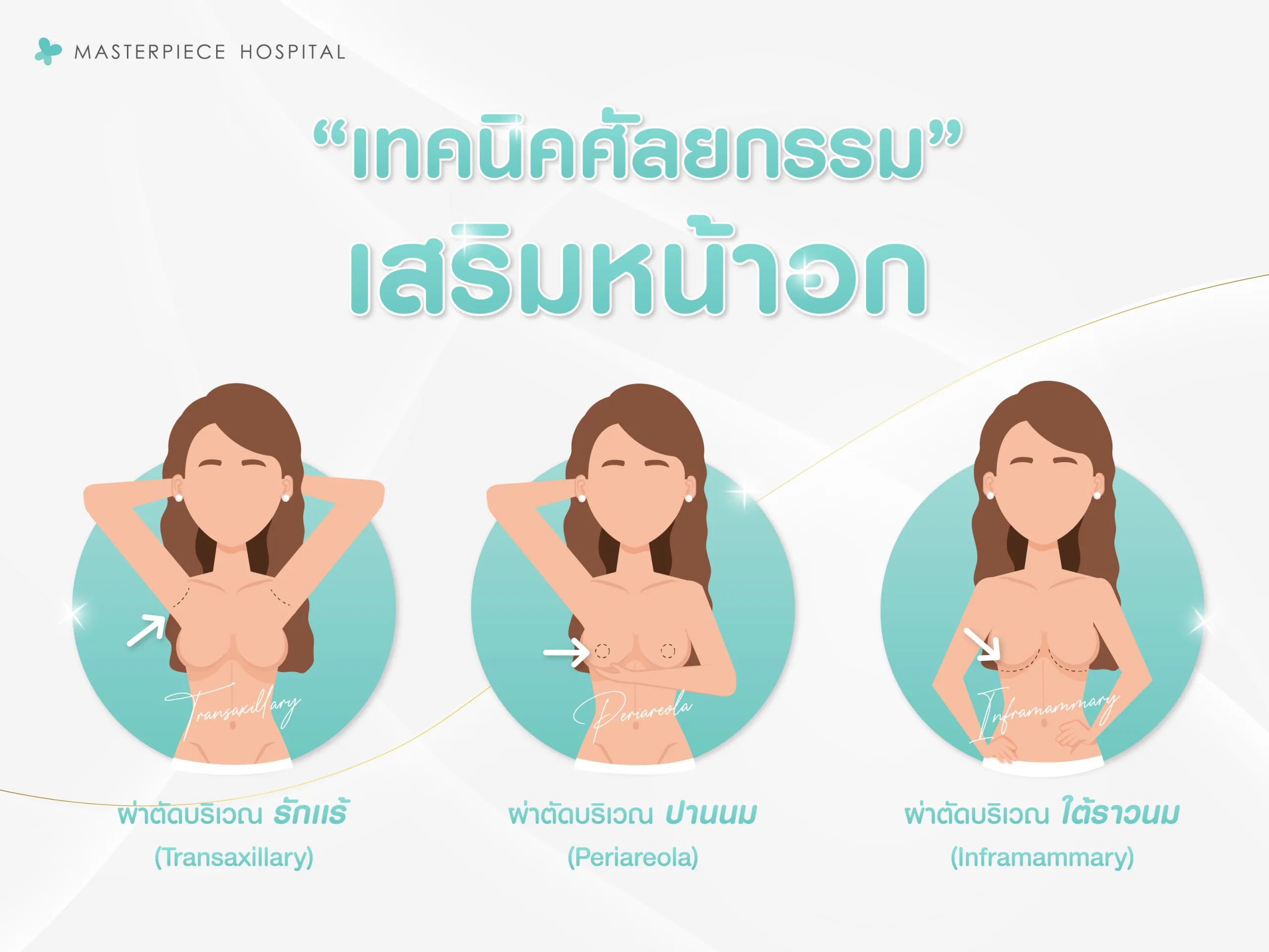 นอกจากจะต้องหาว่าเสริมหน้าอกกับหมอไหนดีแล้ว ยังมีในเรื่องของเทคนิคอีกด้วยว่าปัญหาของคนไข้เหมาะกับการแก้ด้วยเทคนิคใด ซึ่งเทคนิคที่ได้รับความนิยมหลัก ๆ มีอยู่ 3 ประเภทดังนี้