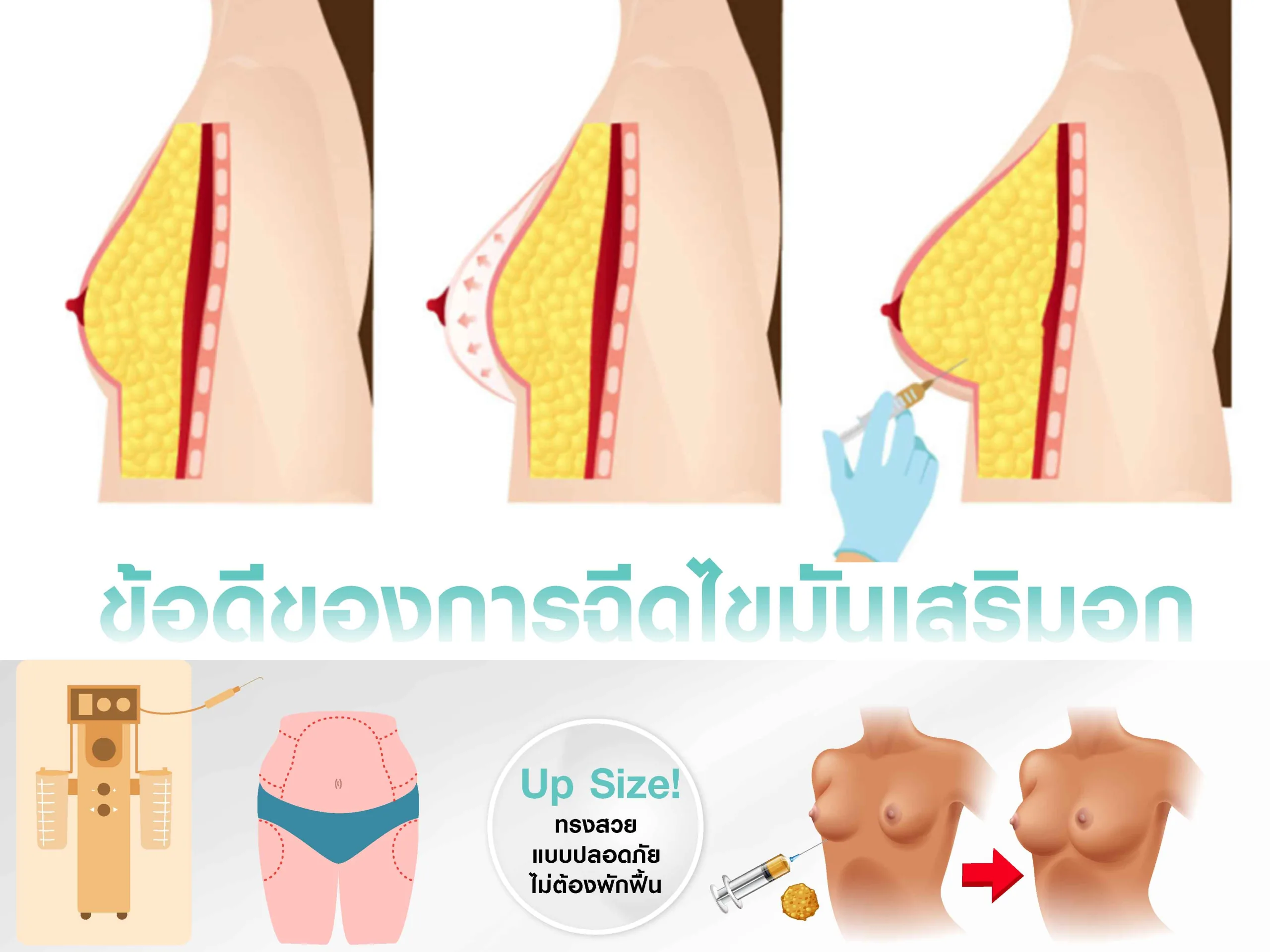 - ฉีดไขมันบริสุทธิ์ – ทำการฉีดไขมันบริเวณเนินอกทุกชั้นอย่างทั่วถึง