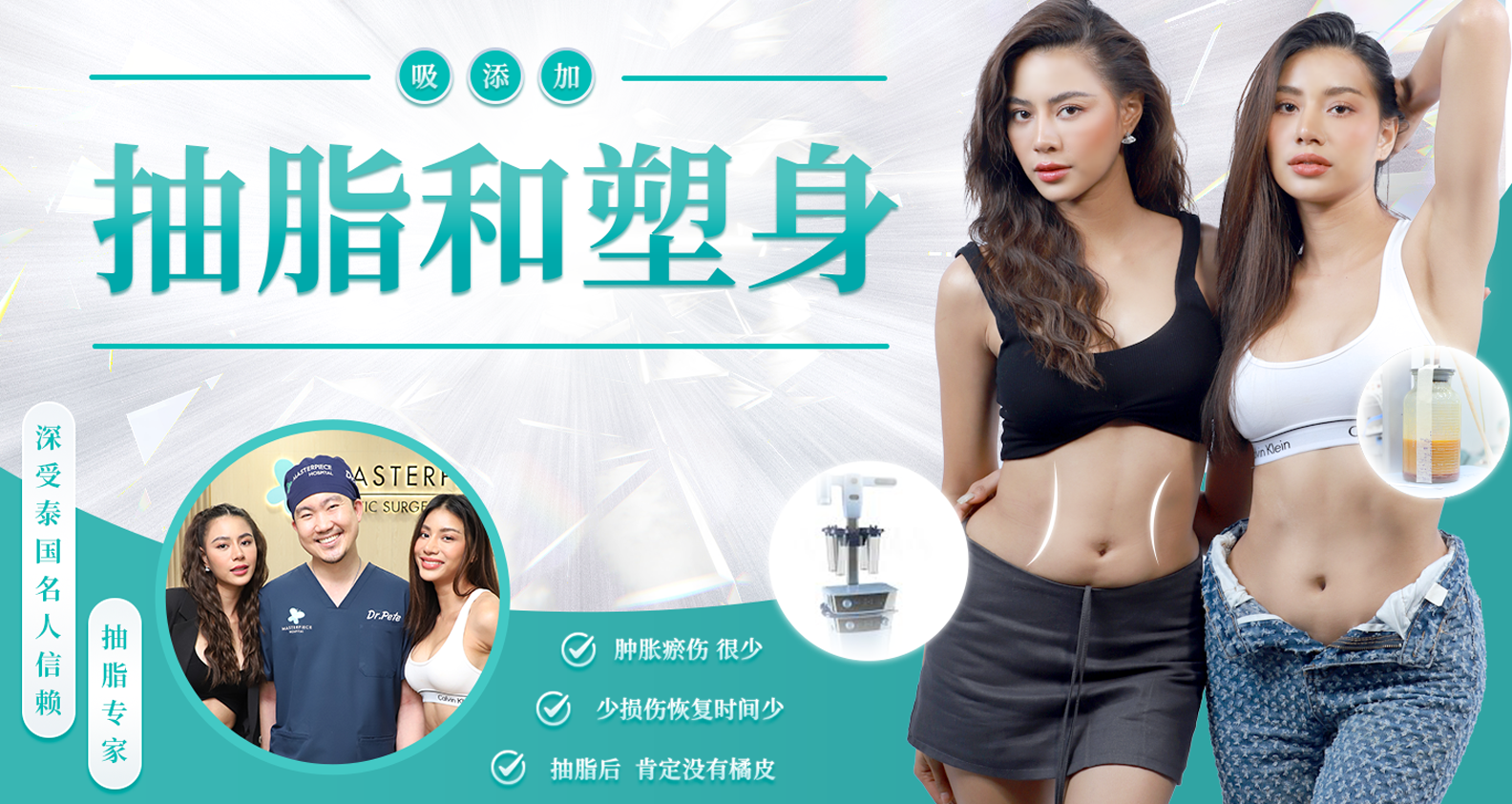 由于腹部吸脂 这样既安全又符合医院标准。 由熟练的整形外科医生和麻醉师组成的团队 痛苦小,恢复快。脂肪抽脂是一种帮助身体看起来更好的方法。 帮助解决脂肪过多的人的问题,想减少特定点的比例。不适合想减肥的人,因为它是将体内存在于各个部位的多余脂肪分解,使体形更匀称。