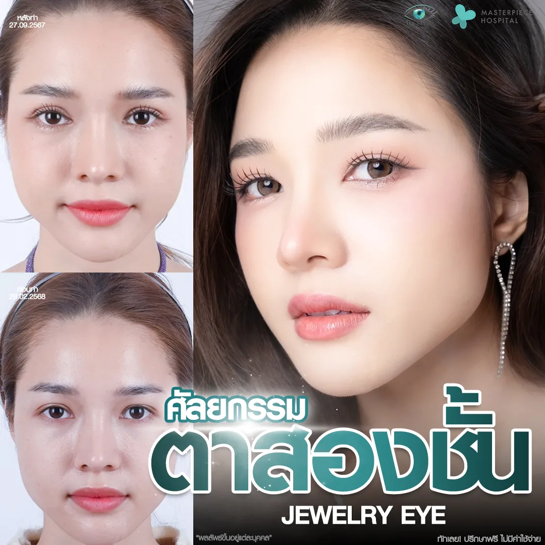 รีวิวตาสองชั้น ที่โรงพยาบาลมาสเตอร์พีช แผลสวยไม่หอยแครง เหมาะสำหรับผู้ที่อยากมีตาสองชั้นคมชัด ไม่ว่าจะเป็นปัญหาตาสองชั้นหลบใน, ตาชั้นเดียว, หนังตาตก, กล้ามเนื้อตาอ่อนแรง ที่มาสเตอร์พีชยินดีให้คำปรึกษาโดยไม่มีค่าใช้จ่าย พร้อมปรับลุคสวยใสเสริมเสน่ห์
