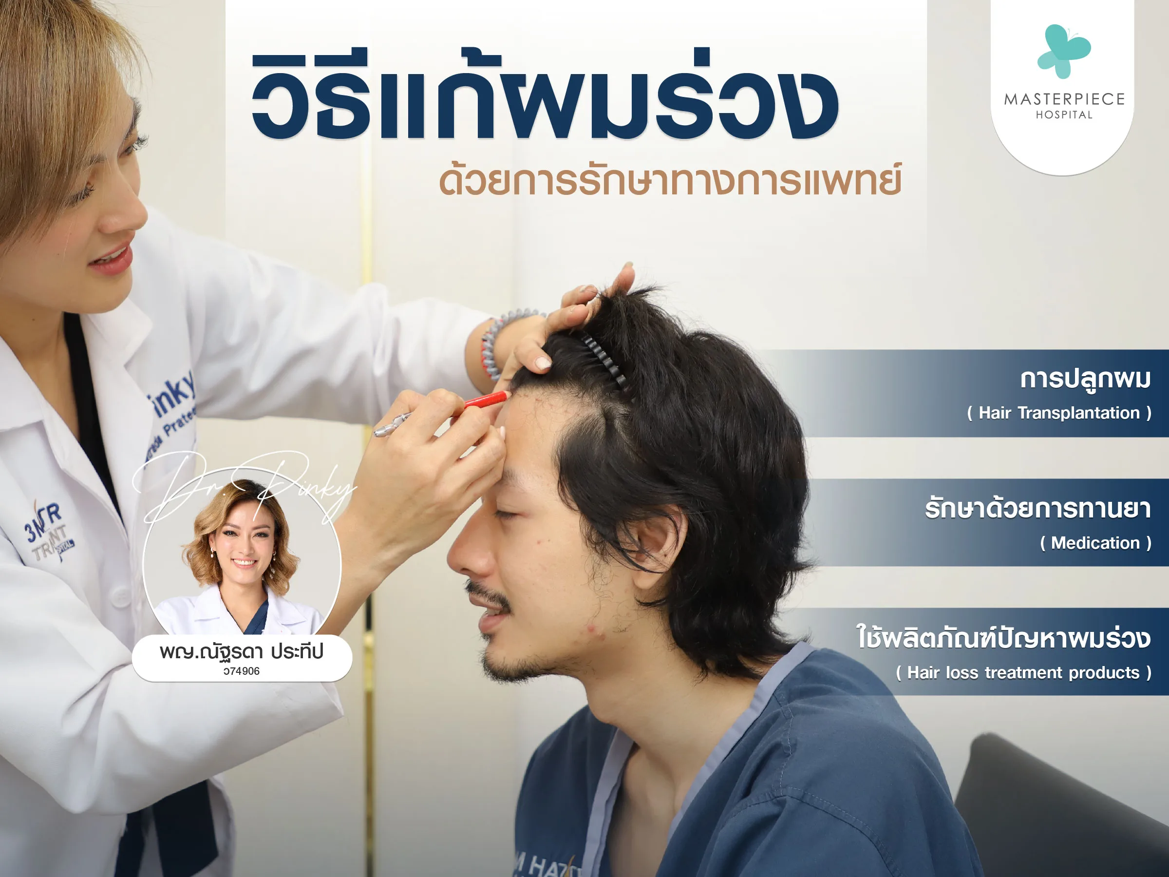 วิธีแก้ผมร่วงด้วยการรักษาทางการแพทย์ อาจแนะนำให้เข้ารับคำปรึกษากับแพทย์ที่มีประสบการณ์โดยตรง เนื่องจากแพทย์จะประเมินปัญหา และวางแผนการรักษาได้อย่างเหมาะสม โดยการแก้ผมร่วงด้วยเทคนิคทางการแพทย์มีดังต่อไปนี้