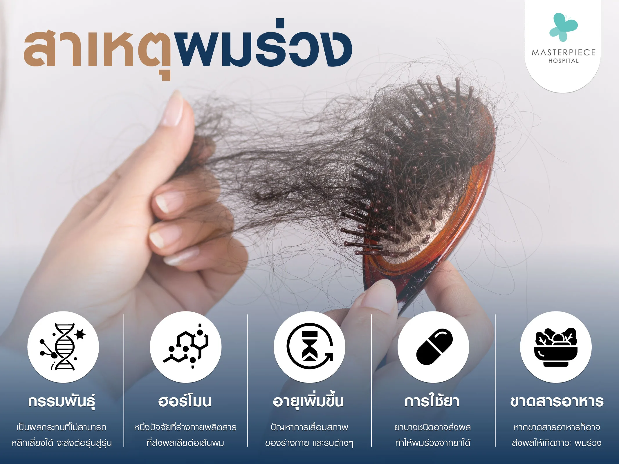 สาเหตุผมร่วงเกิดได้จากหลายปัจจัย แม้ปกติเส้นผมในแต่ละวันจะหลุดร่วงอยู่แล้วประมาณ 50 – 100 เส้น ก็สามารถงอกใหม่เพื่อทดแทนได้ แต่เมื่อมีปัญหาผมร่วงมากเป็น 2 เท่า ก็อาจเกิดจากสาเหตุอื่น ๆ ได้ดังนี้