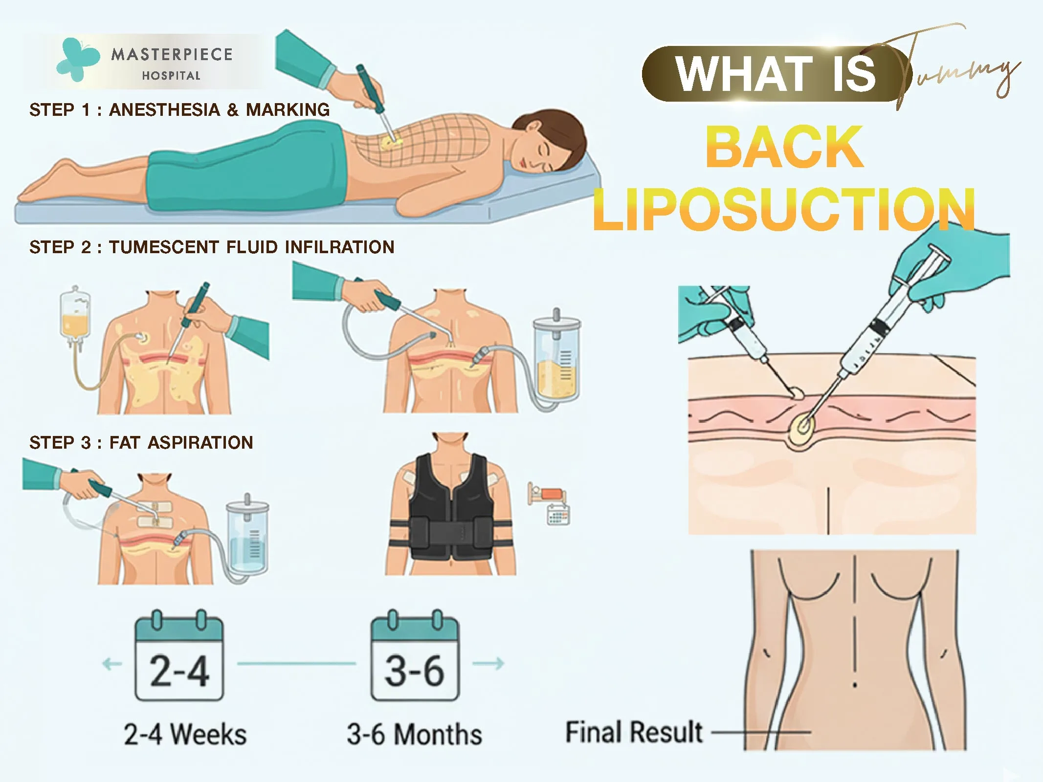 Generally, swelling and bruising resolve on their own within 1–2 weeks, after which you can resume normal activities. It is recommended to follow the doctor’s instructions carefully to allow full recovery and achieve the smooth back results you desire.