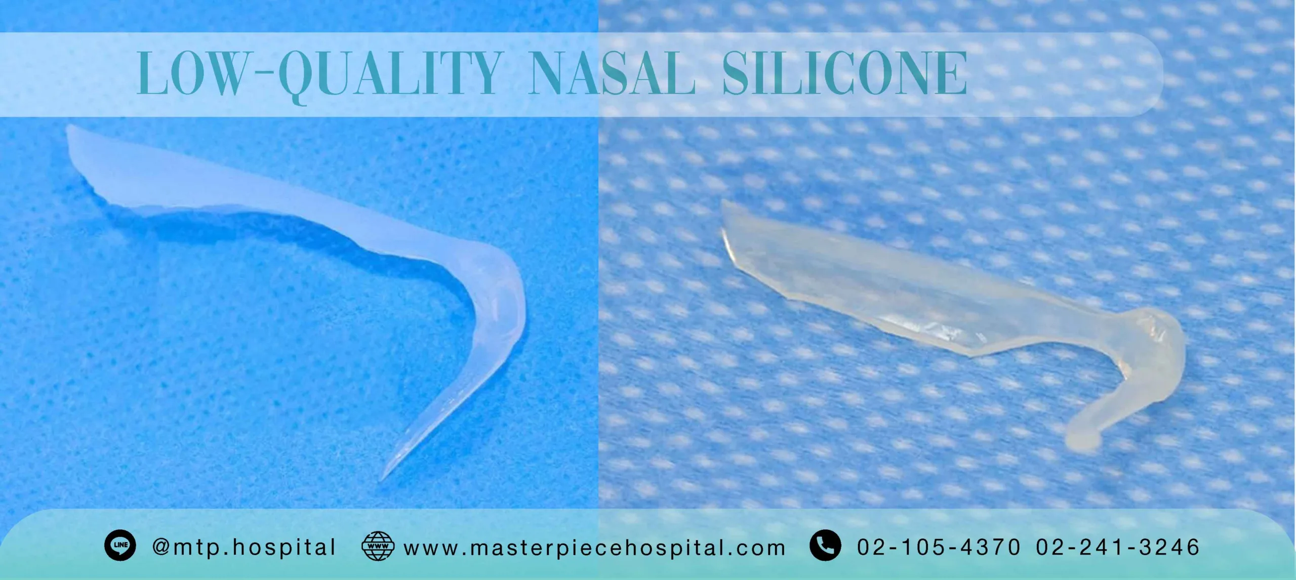 This type of mistake can be divided into two parts. The first is on the surgeon’s side. A truly skilled surgeon who understands facial anatomy and structure will know exactly what type of silicone to use, from which country, and at what height. In the example image (above), the same silicone size was used on different nose types. You can see that using a silicone implant that’s too prominent for the patient’s existing nasal tissue poses a much higher risk of extrusion in the future, especially compared to someone with more nasal tissue or a longer nose structure. These risks start from the moment you begin considering rhinoplasty.