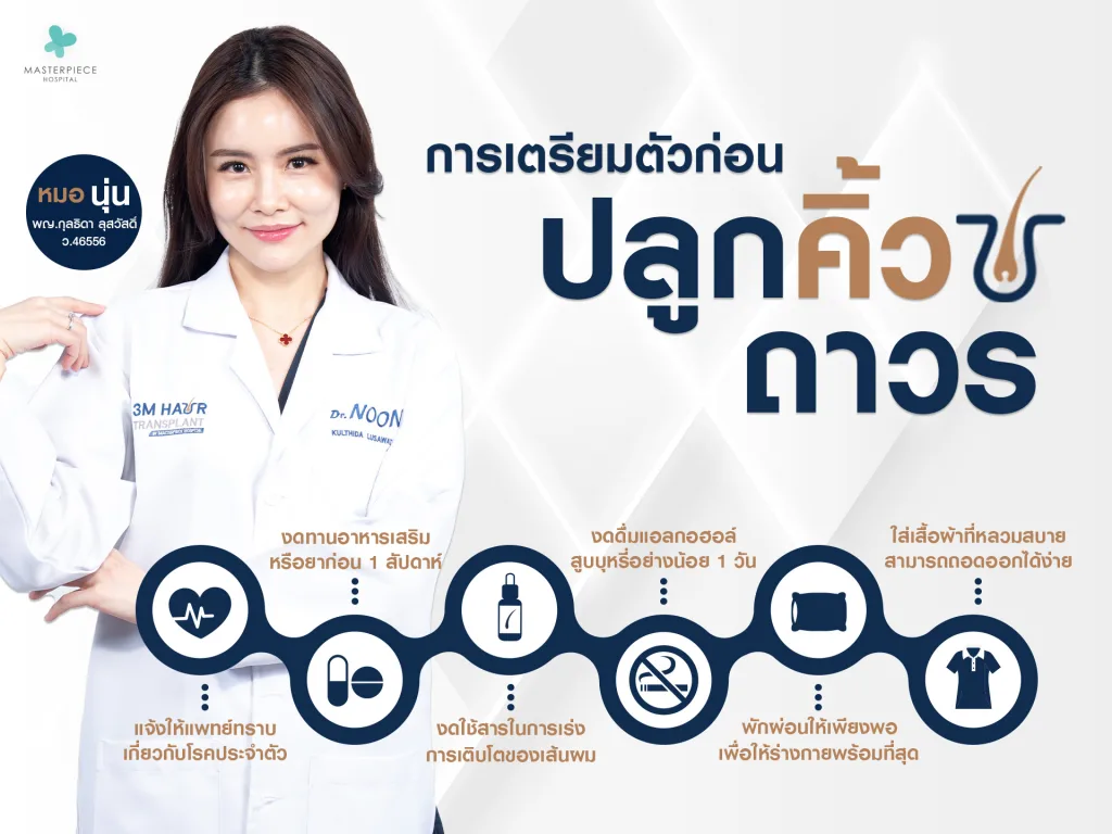 ก่อนเข้ารับการผ่าตัดปลูกคิ้วถาวรนั้น แพทย์จะมีข้อปฏิบัติที่จำเป็นหลายอย่างที่ควรรู้ไว้ เพื่อความปลอดภัย และเลี่ยงปัจจัยต่าง ๆ ที่ส่งผลเสียได้ในภายหลังดังนี้