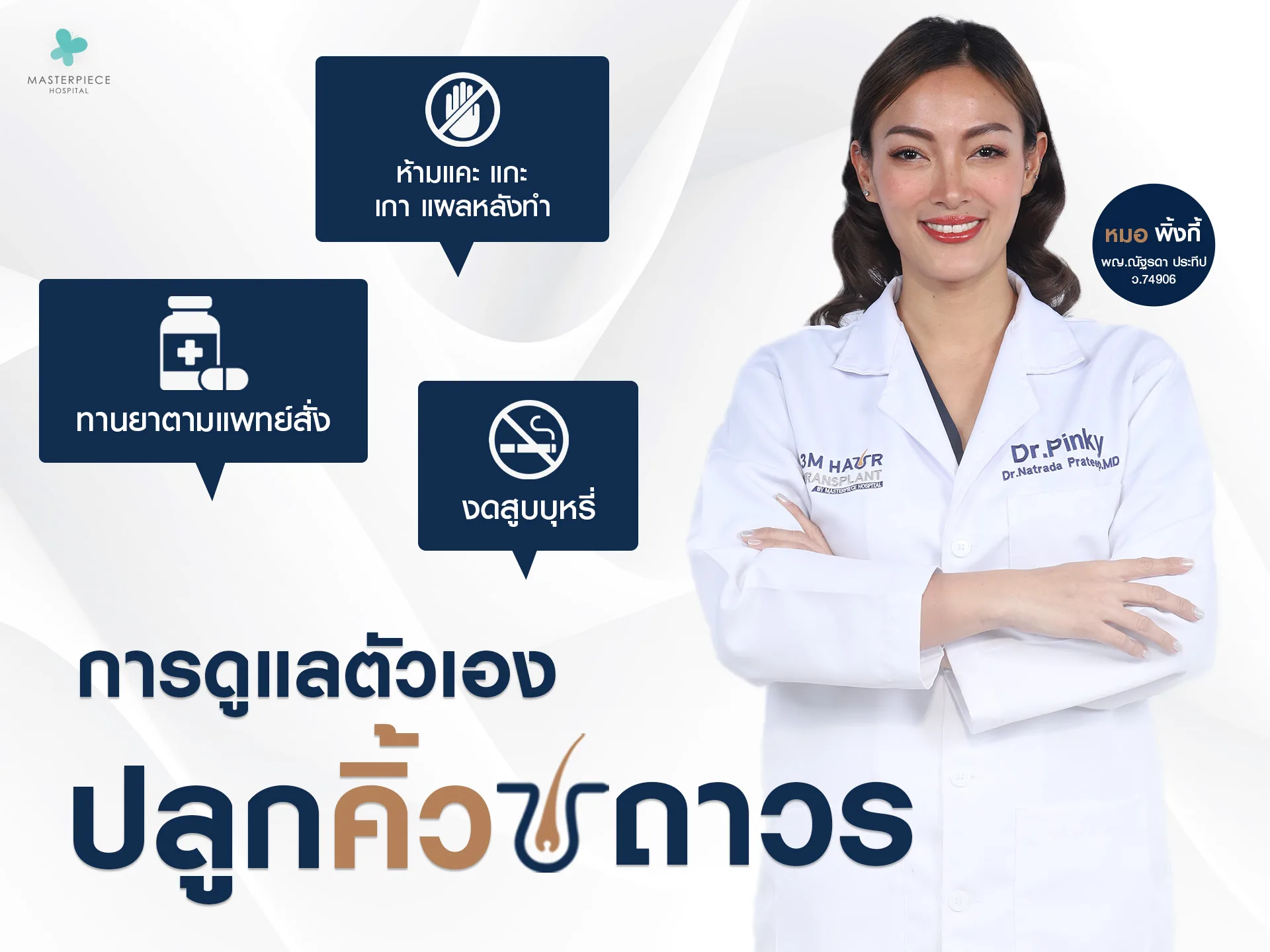 - ระมัดระวังไม่ให้แผลผ่าตัดไปกระทบกระแทกของแข็ง เพราะมีโอกาสทำให้รากผมที่ปลูกหลุดออกมาได้ครับ