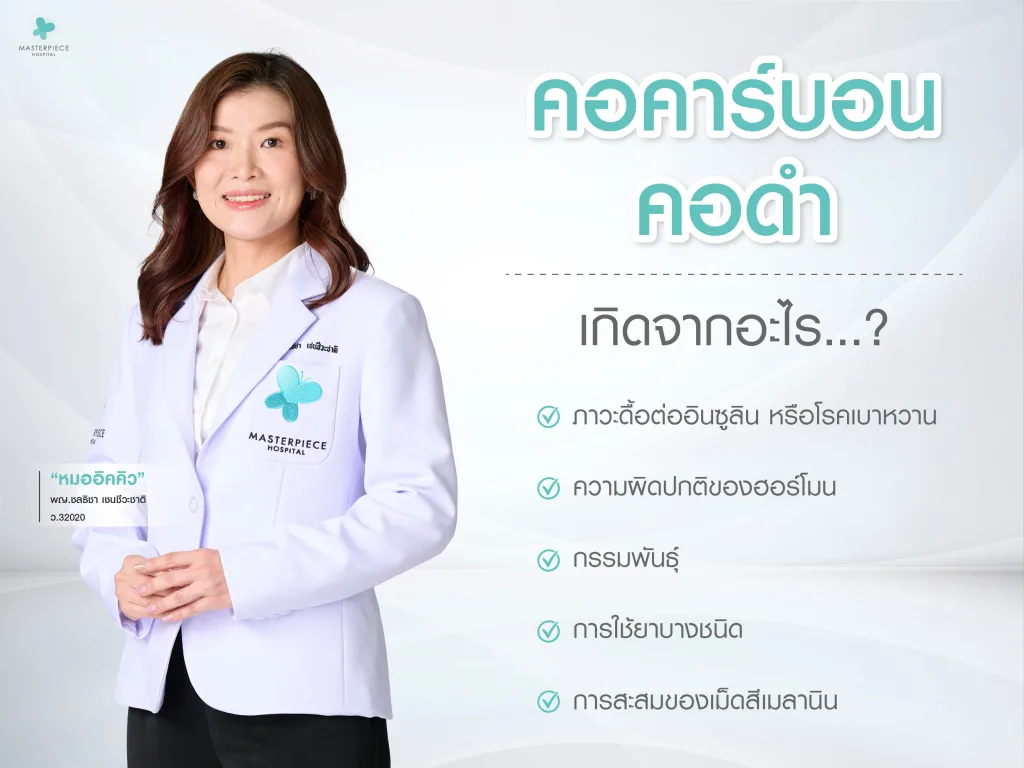 คอคาร์บอนหรือคอดำ คือภาวะที่ผิวบริเวณลำคอคล้ำ หนาและสีไม่สม่ำเสมอ มักเกิดจากการเสียดสี ฮอร์โมน น้ำหนักตัวหรือการดูแลผิวไม่ถูกวิธี หลายคนสงสัยว่าคอคาร์บอนแก้ยังไงและทำให้ขาวขึ้นได้ไหม ซึ่งปัญหาหลังคอดำสามารถดีขึ้นได้หากรู้สาเหตุที่แท้จริงและดูแลอย่างถูกต้อง ที่โรงพยาบาลมาสเตอร์พีชมีทีมแพทย์คอยประเมินและให้คำปรึกษาแบบเฉพาะบุคคล โดยผ่านบริการ Lady Care By Masterpiece Hospital ช่วยวางแนวทางดูแลผิวคออย่างเหมาะสม ปลอดภัย และเห็นผลจริงในระยะยาว
