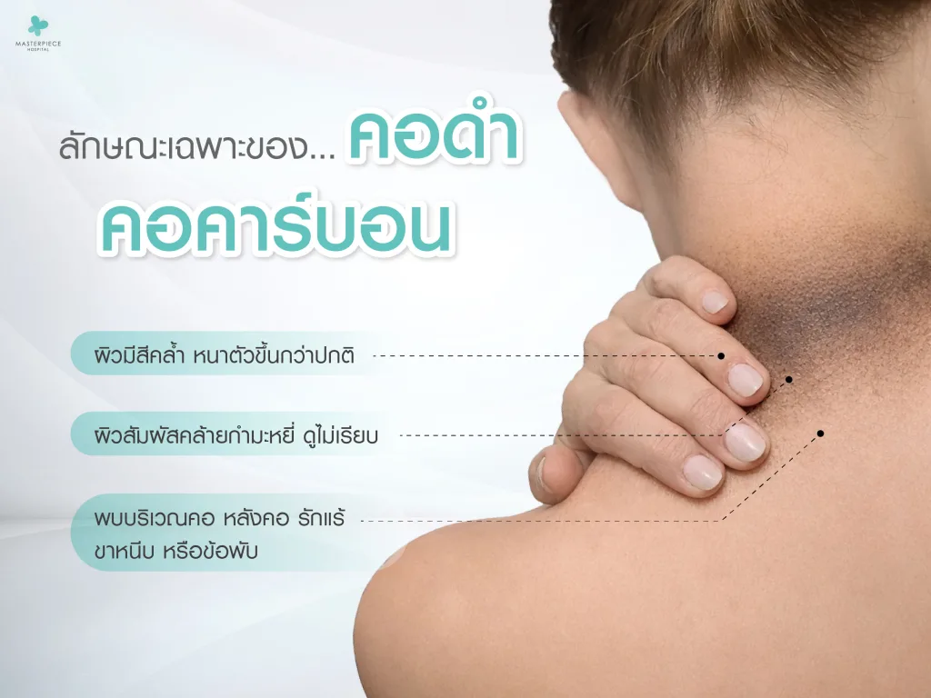 คอดำหรือคอคาร์บอน เป็นภาวะผิวที่ไม่ได้เกิดจากคราบสกปรกแต่อย่างใด แต่เกี่ยวข้องกับความผิดปกติภายในร่างกาย การสังเกตลักษณะเฉพาะจะช่วยให้เข้าใจปัญหาและดูแลได้ตรงจุดมากขึ้นโดยมีลักษณะดังนี้