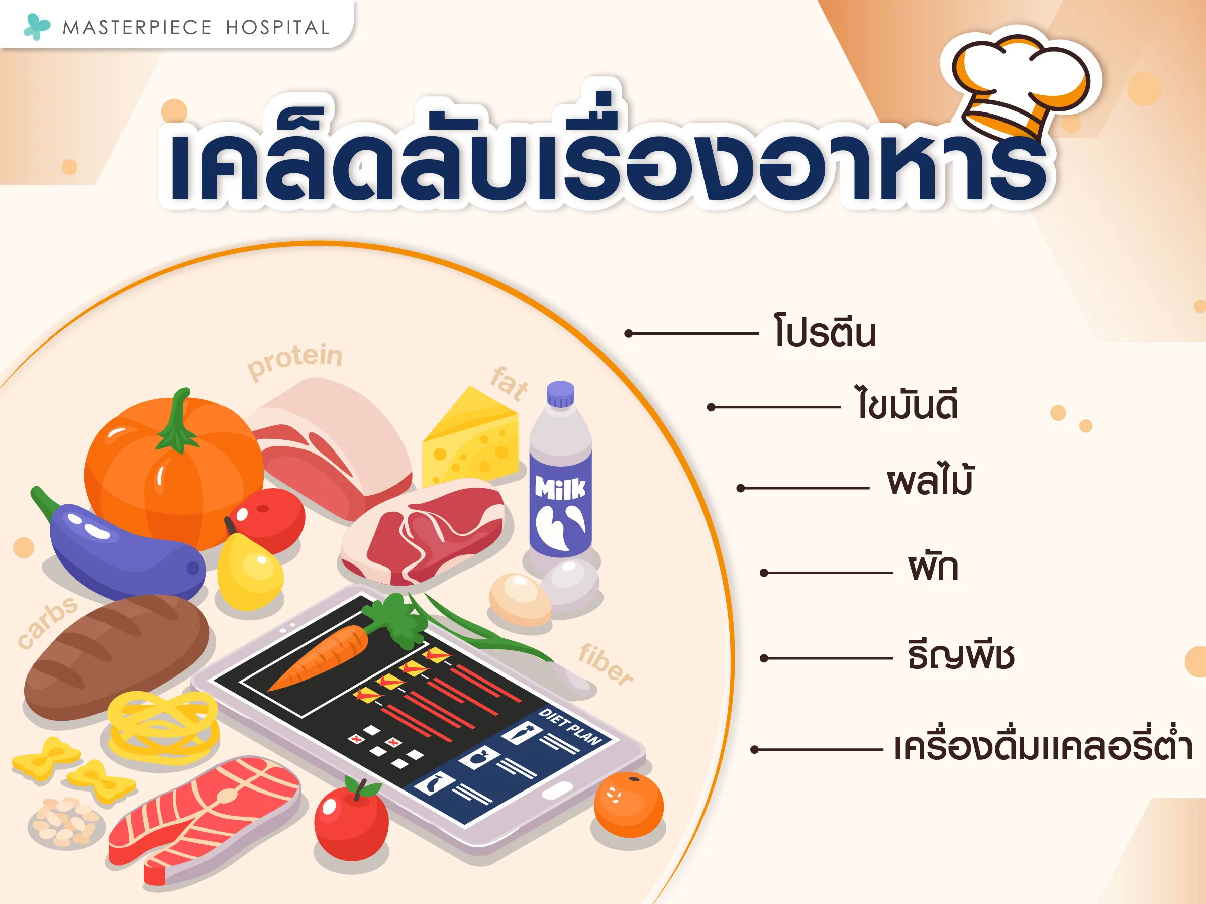 เคล็ดลับสำคัญที่ช่วยในการลดน้ำหนัก คือ การเลือกสารอาหารที่รับประทาน รวมถึงการจำกัดแคลอรี่ให้เหมาะสมกับความต้องการของร่างกาย โดยเน้นอาหารที่ช่วยลดน้ำหนัก และมีคุณค่าทางโภชนาการสูง ดังนี้