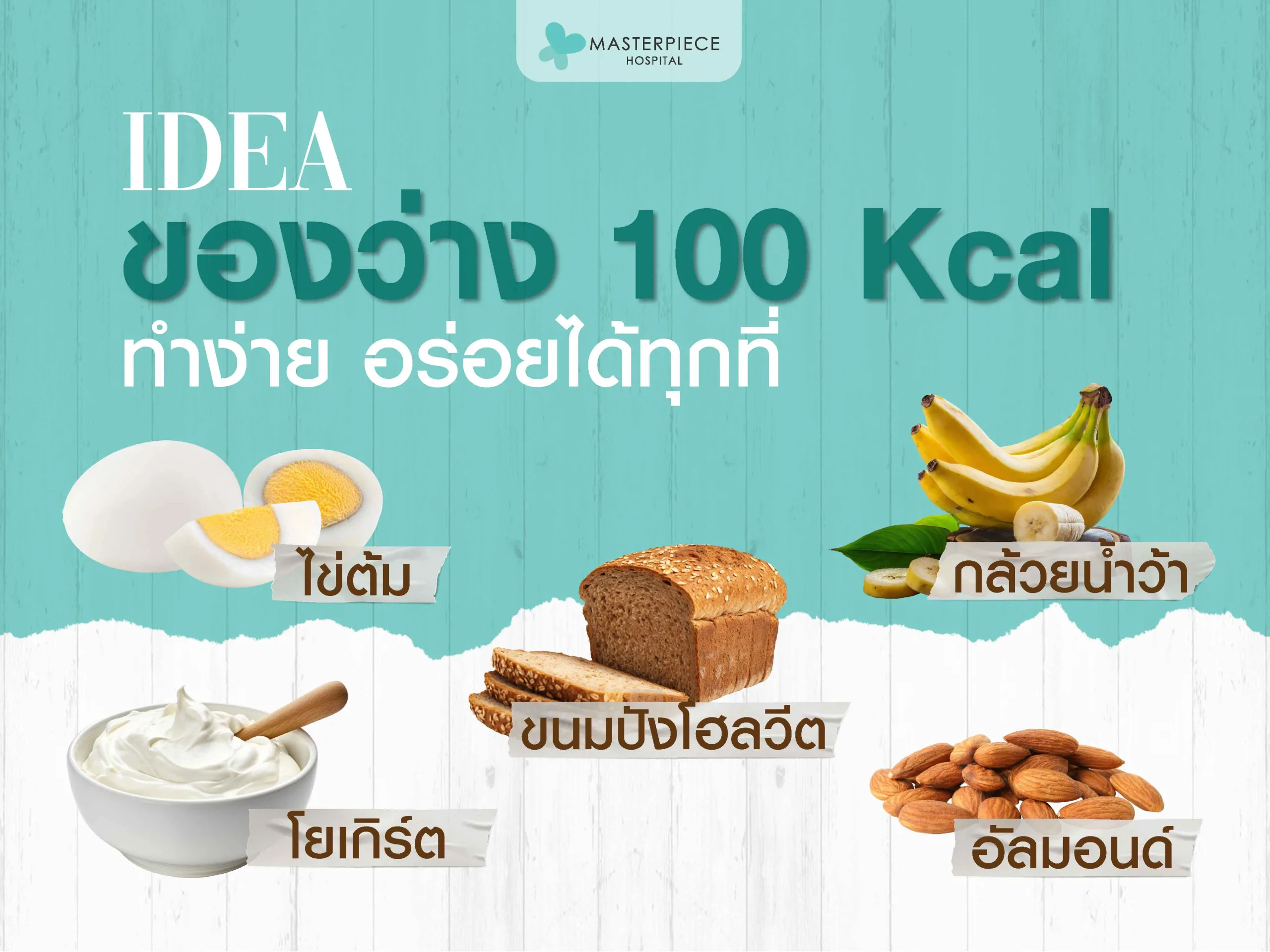 โดยทั่วไปร่างกายของผู้ชายควรได้รับพลังงานประมาณ 2,000 กิโลแคลอรี ในขณะที่ผู้หญิงควรได้รับพลังงานประมาณ 1,600 กิโลแคลอรี ถ้าหากต้องการลดน้ำหนักก็จำเป็นจะต้องทานอาหารให้น้อยลง หรือเลือกทานอาหารแคลอรีต่ำ เพื่อให้ร่างกายดึงพลังงานที่สะสมออกมาใช้ กล่าวคือในการลดน้ำหนัก นอกจากการออกกำลังกาย อีกสิ่งหนึ่งที่ต้องให้ความสำคัญคือการควบคุมอาหาร ดังนั้น คำถามที่ว่าทำไมต้อง 100 แคลอรี? คำตอบคือเพื่อไม่ให้แคลอรีของว่างไปกระทบต่ออาหารมื้อหลัก และสามารถทานได้โดยไม่รบกวนการเผาผลาญของร่างกาย ควรเป็นอาหารไฟเบอร์สูง และมีโปรตีนในของว่าง ซึ่งจะช่วยลดความหิวได้เป็นอย่างดี