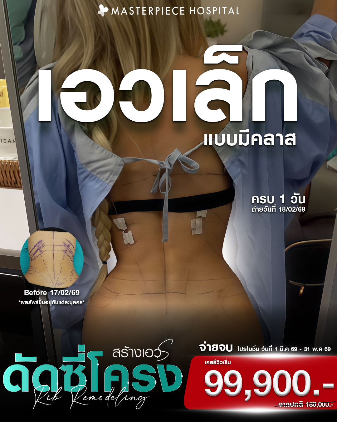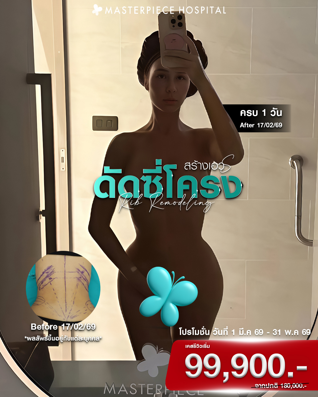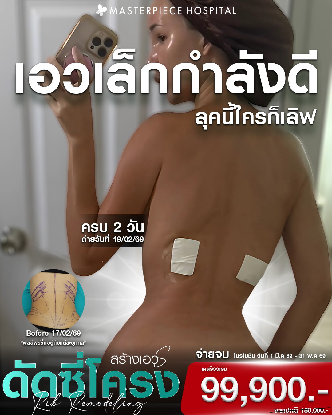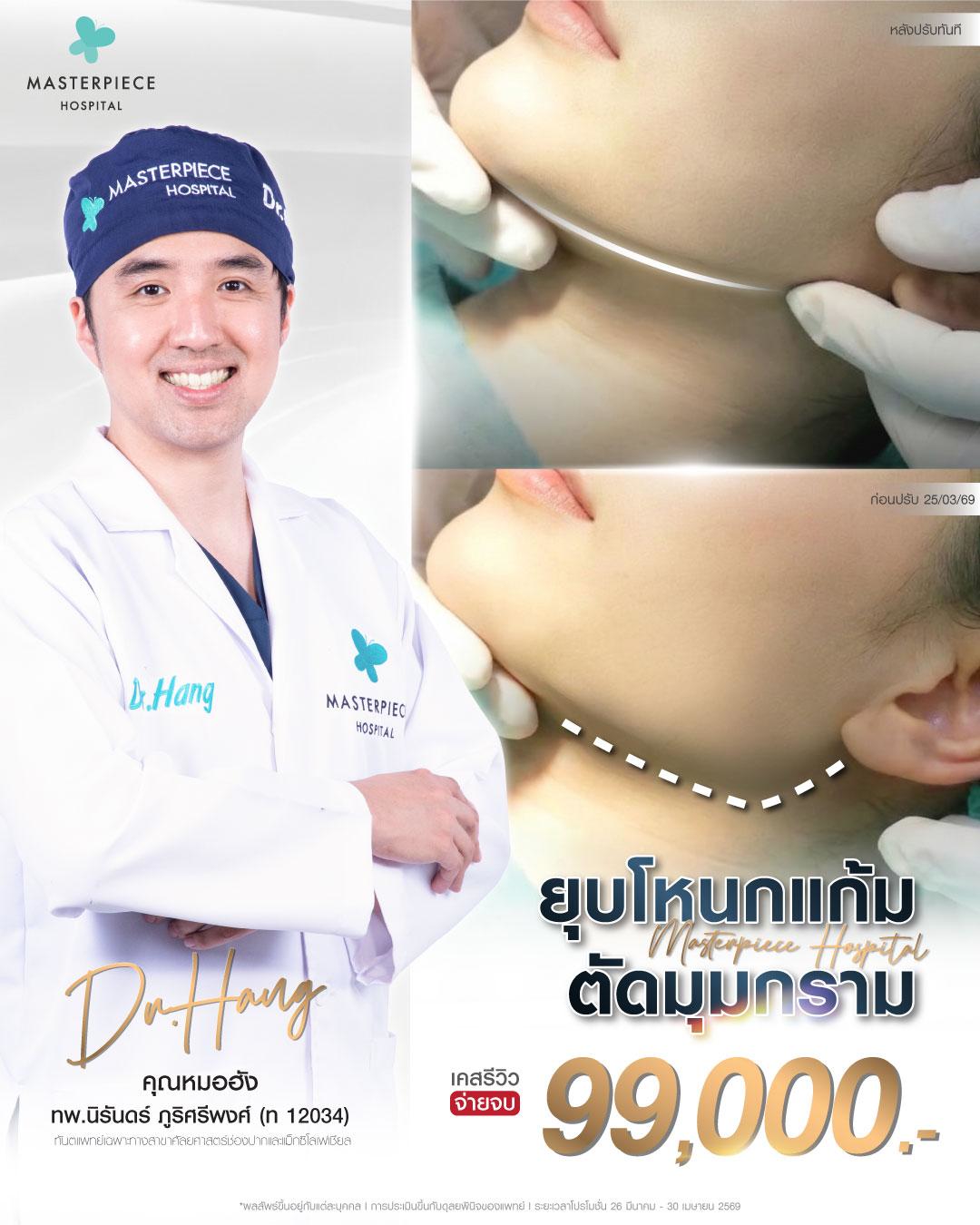 โรงพยาบาลศัลยกรรมมาสเตอร์พีช ศูนย์รวมบริการด้านศัลยกรรมความงาม ช่วยปรับเปลี่ยน ปรับปรุง เพื่อเสริมความมั่นใจให้คุณดูดีมากยิ่งขึ้น ดูแลตั้งแต่หัวจรดเท้า บริการทุกขั้นตอนภายใต้มาตรฐานโรงพยาบาล สะอาด ปลอดภัย เครื่องมือทางการแพทย์ที่มีเทคโนโลยีอันทันสมัย โดยทีมแพทย์ที่มีประสบการณ์ พร้อมบุคลากรที่มีความรู้ความสามารถ ส่งผลให้ Masterpiece Hospital ได้รับความไว้วางใจ จนสามารถก้าวขึ้นมาเป็นโรงพยาบาลชั้นนำ ด้านการดูแลผิวพรรณและศัลยกรรมความงามของเมืองไทย