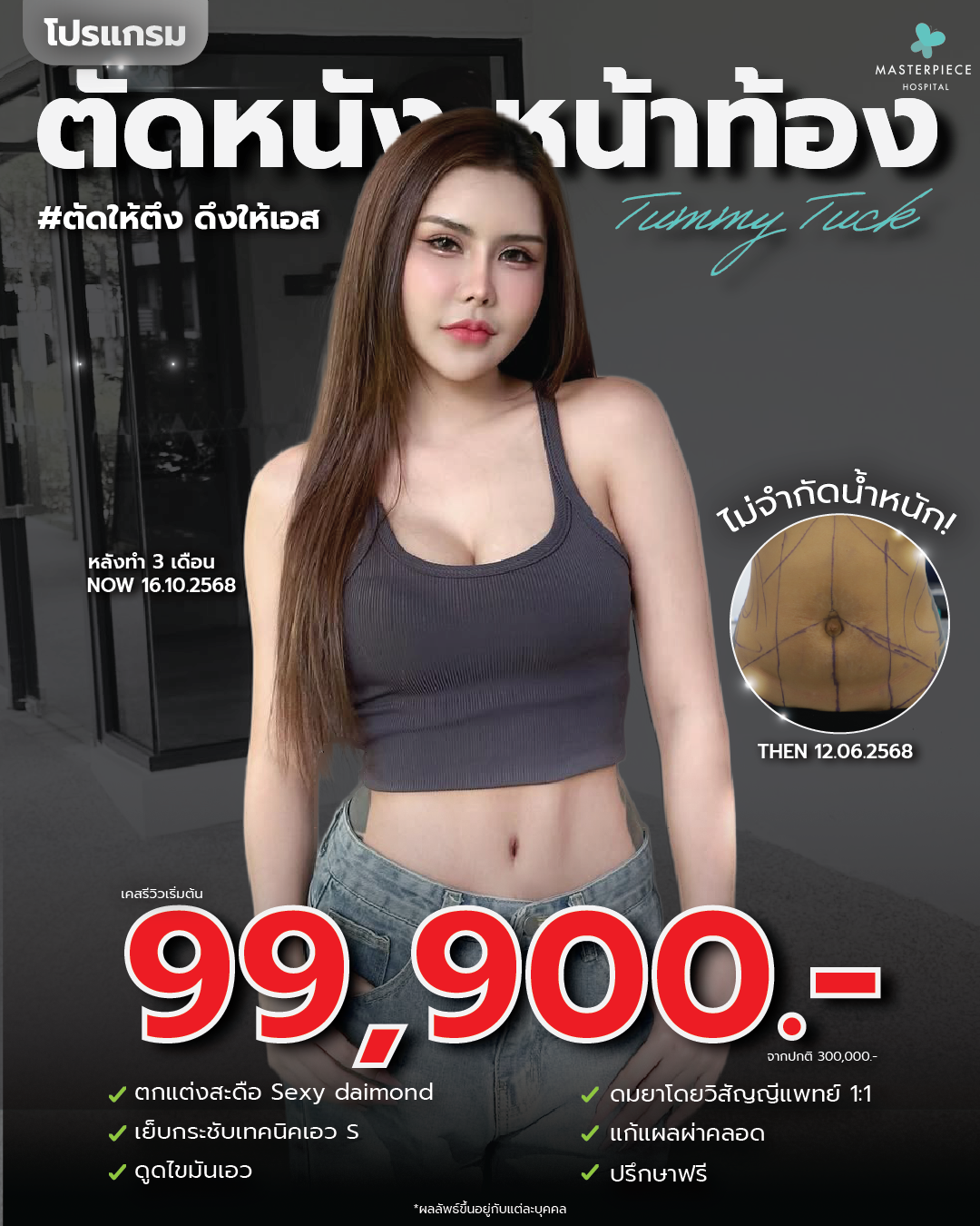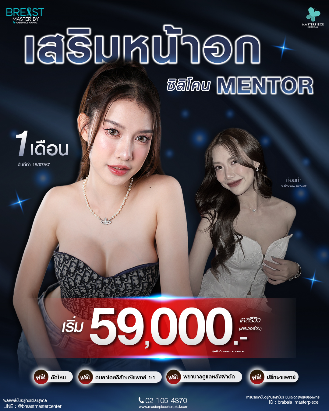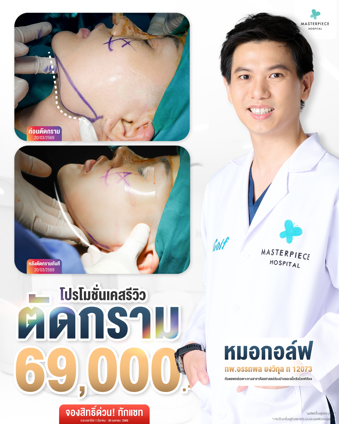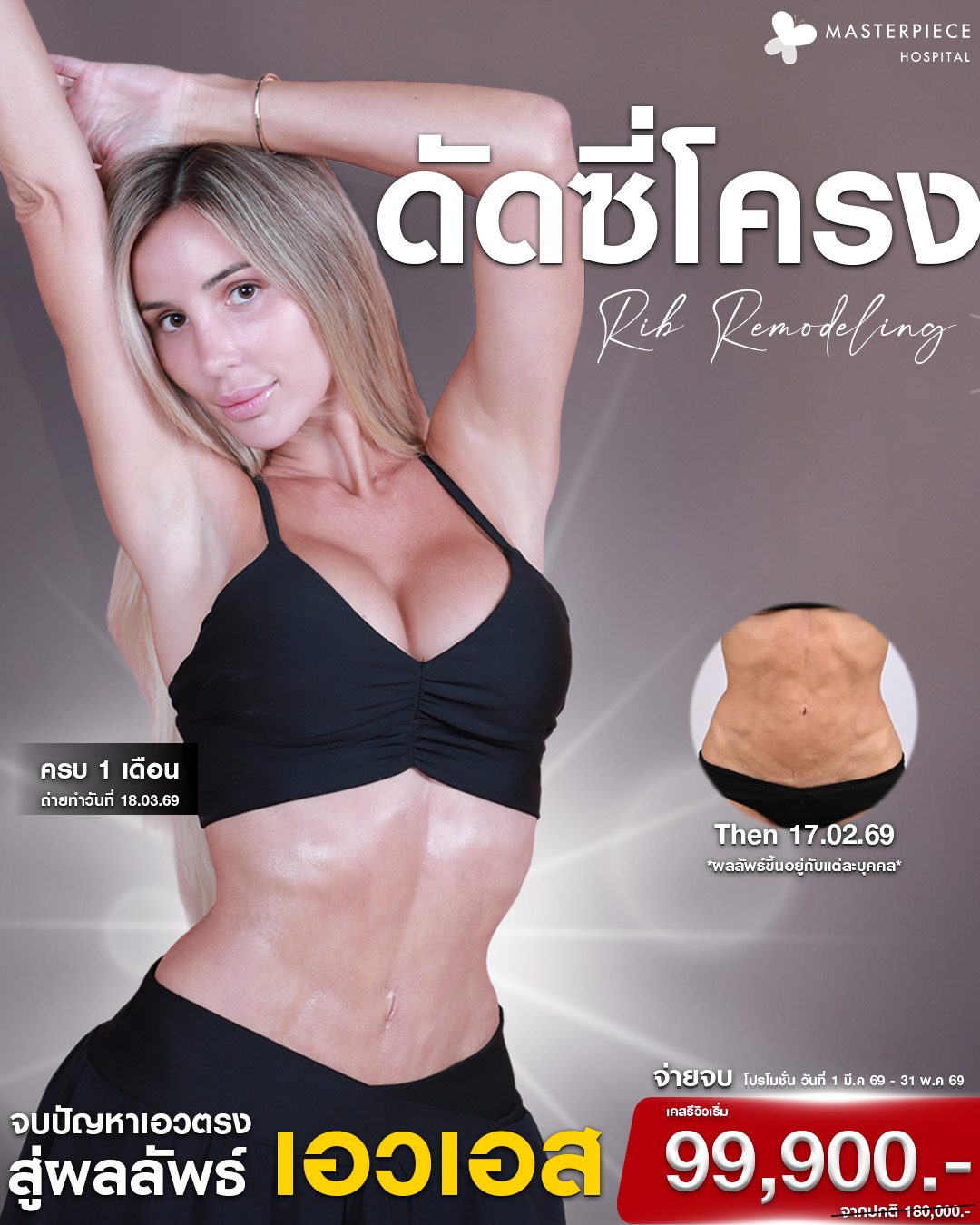 โรงพยาบาลศัลยกรรมมาสเตอร์พีช ศูนย์รวมบริการด้านศัลยกรรมความงาม ช่วยปรับเปลี่ยน ปรับปรุง เพื่อเสริมความมั่นใจให้คุณดูดีมากยิ่งขึ้น ดูแลตั้งแต่หัวจรดเท้า บริการทุกขั้นตอนภายใต้มาตรฐานโรงพยาบาล สะอาด ปลอดภัย เครื่องมือทางการแพทย์ที่มีเทคโนโลยีอันทันสมัย โดยทีมแพทย์ที่มีประสบการณ์ พร้อมบุคลากรที่มีความรู้ความสามารถ ส่งผลให้ Masterpiece Hospital ได้รับความไว้วางใจ จนสามารถก้าวขึ้นมาเป็นโรงพยาบาลชั้นนำ ด้านการดูแลผิวพรรณและศัลยกรรมความงามของเมืองไทย