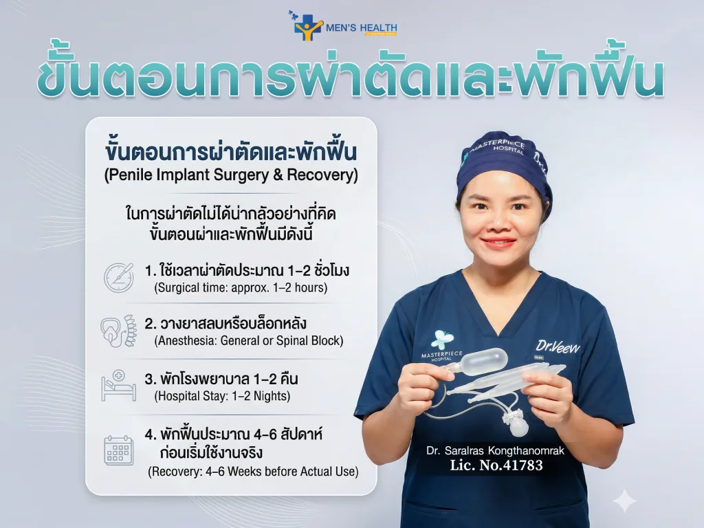 ในการผ่าตัดแกนองคชาตเทียมไม่ได้น่ากลัวอย่างที่คิด ขั้นตอนผ่าและพักฟื้นมีดังนี้