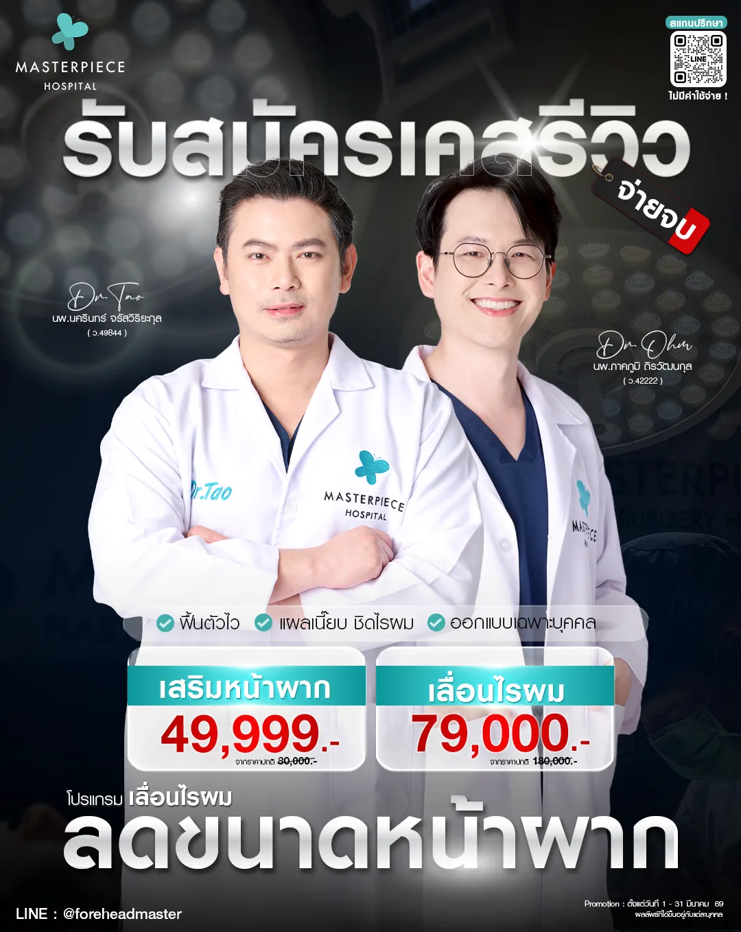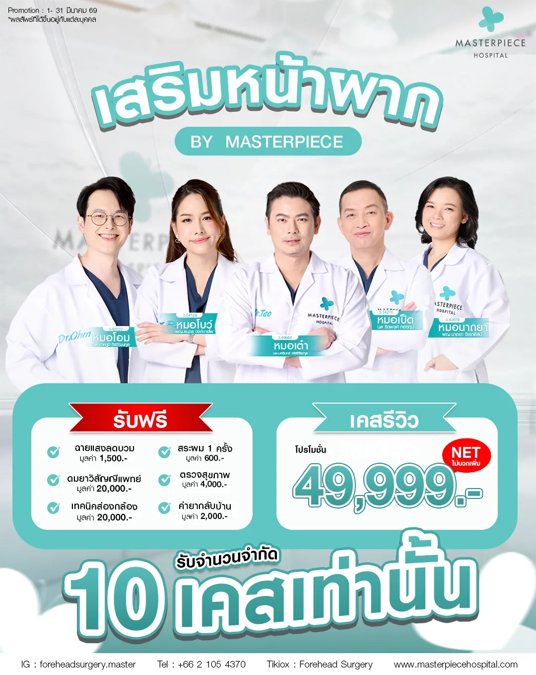 โรงพยาบาลมาสเตอร์พีช จัด Promotion ศัลยกรรมหลากหลาย ตอบโจทย์ทุกความต้องการ ปรับรูปลักษณ์ให้สวยมั่นใจ ในราคาพิเศษ