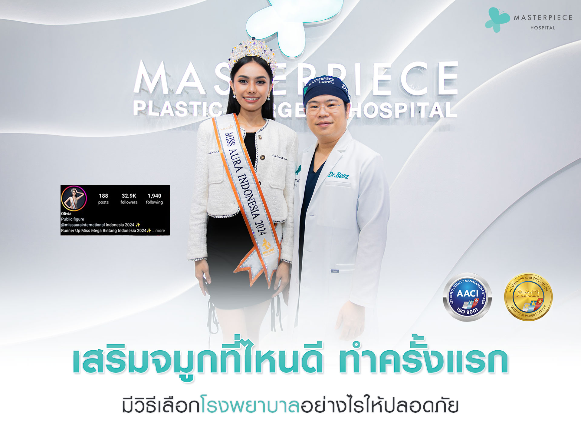 โรงพยาบาลมาสเตอร์พีช (Masterpiece Hospital) เป็นโรงพยาบาลศัลยกรรมมีประสบการณ์ด้านการศัลยกรรมจมูกมากกว่า 10,000 เคส พร้อมทั้งแพทย์มากประสบการณ์หลายท่าน ที่สามารถช่วยออกแบบและแก้ไขปัญหาของจมูกได้อย่างตรงจุด โดยมีดาราและอินฟลูเอนเซอร์หลายคนเลือกเข้ารับบริการ จึงทำให้รับความไว้วางใจด้านการเสริมจมูก
