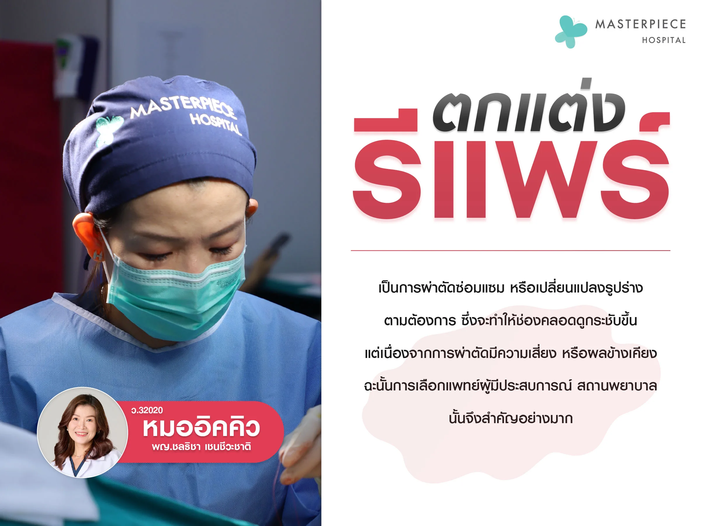 การผ่าตัดศัลยกรรมตกแต่งรีแพร์ แม้จะเป็นทางออกของปัญหาต่าง ๆ ที่เกี่ยวกับช่องคลอด แต่มีปัจจัยสำคัญอีกหลายอย่างที่คนไข้ควรรู้ เช่น การเลือกสถานพยาบาลในการเข้ารับการรักษา เนื่องจากปัจจุบันมีสถานพยาบาลเปิดให้บริการอยู่หลายแห่ง แต่จะเลือกทำหัตถการที่ไหนดี และตัดสินใจจากอะไรไปดูพร้อมกันได้เลย