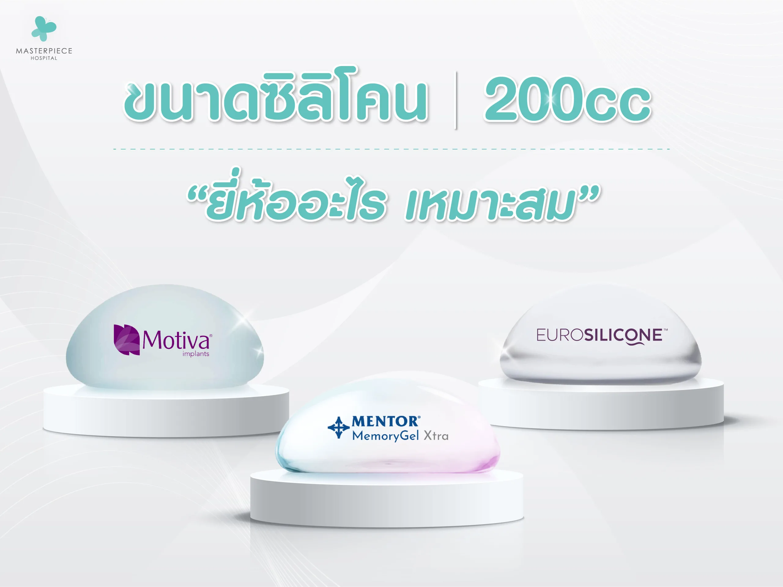 สำหรับซิลิโคนขนาด 200cc โดยทั่วไปจะเหมาะกับผู้ที่มีหน้าอกเล็ก ค่อนข้างแบน ต้องการเพิ่มขนาดหน้าอกให้ใหญ่ขึ้นประมาณ 1 คัพ ในส่วนของการเลือกยี่ห้อซิลิโคน ควรเลือกให้เหมาะสมกับร่างกายของตัวเอง ปัจจุบันมีให้เลือกหลายยี่ห้อ ซึ่งแต่ละยี่ห้อก็มีจุดเด่นและข้อดีที่แตกต่างกันไป โดยยี่ห้อที่ได้รับความนิยมในประเทศไทย มีดังนี้