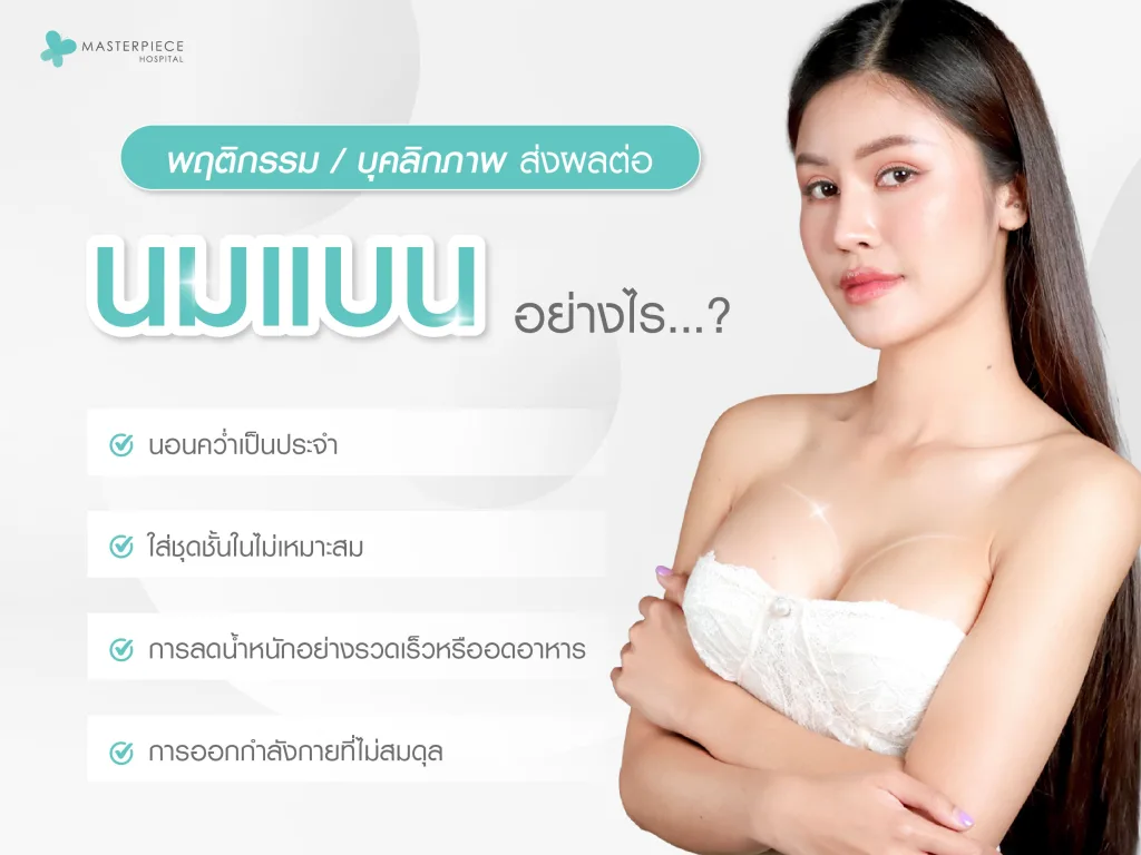 แม้ว่าปัญหานมแบน จะขึ้นอยู่กับพันธุกรรมและฮอร์โมนเป็นหลัก แต่พฤติกรรมในชีวิตประจำวันและบุคลิกภาพบางอย่างก็สามารถส่งผลต่อรูปลักษณ์และรูปทรงของหน้าอกได้โดยไม่รู้ตัว หากทำต่อเนื่องเป็นเวลานาน หน้าอกอาจดูแบน ไม่กระชับ หรือเสียทรงได้ง่ายขึ้นดังนี้