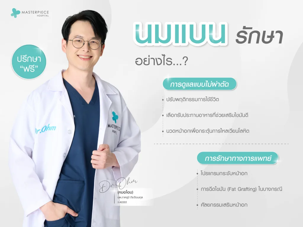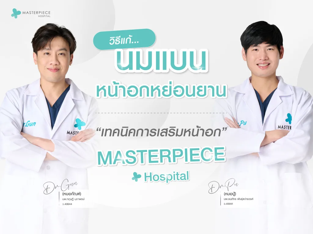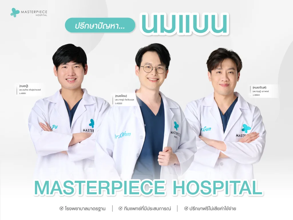 อย่าปล่อยให้ปัญหานมแบน กลายเป็นปมด้อยที่สร้างผลกระทบต่อความมั่นใจในการแต่งตัวและการใช้ชีวิต ไม่ว่าความแบนราบนี้จะเกิดจาก พันธุกรรม ฮอร์โมน หรือ สาเหตุ จากพฤติกรรมที่เราเผลอทำร้ายน้องนมโดยไม่รู้ตัว การมัวแต่นั่งกลุ้มใจอาจไม่ช่วยให้อะไรดีขึ้นมา จบปัญหานมแบนอย่างตรงจุด เปลี่ยนลุคให้ดูอวบอิ่ม มีเสน่ห์แบบสั่งได้ กับทีมศัลยแพทย์เฉพาะทางที่โรงพยาบาลมาสเตอร์พีช เราพร้อมให้คำปรึกษาและออกแบบทรงหน้าอกให้เข้ากับสรีระของคุณที่สุด เพื่อผลลัพธ์ที่สวย ปลอดภัย และดูเป็นธรรมชาติ