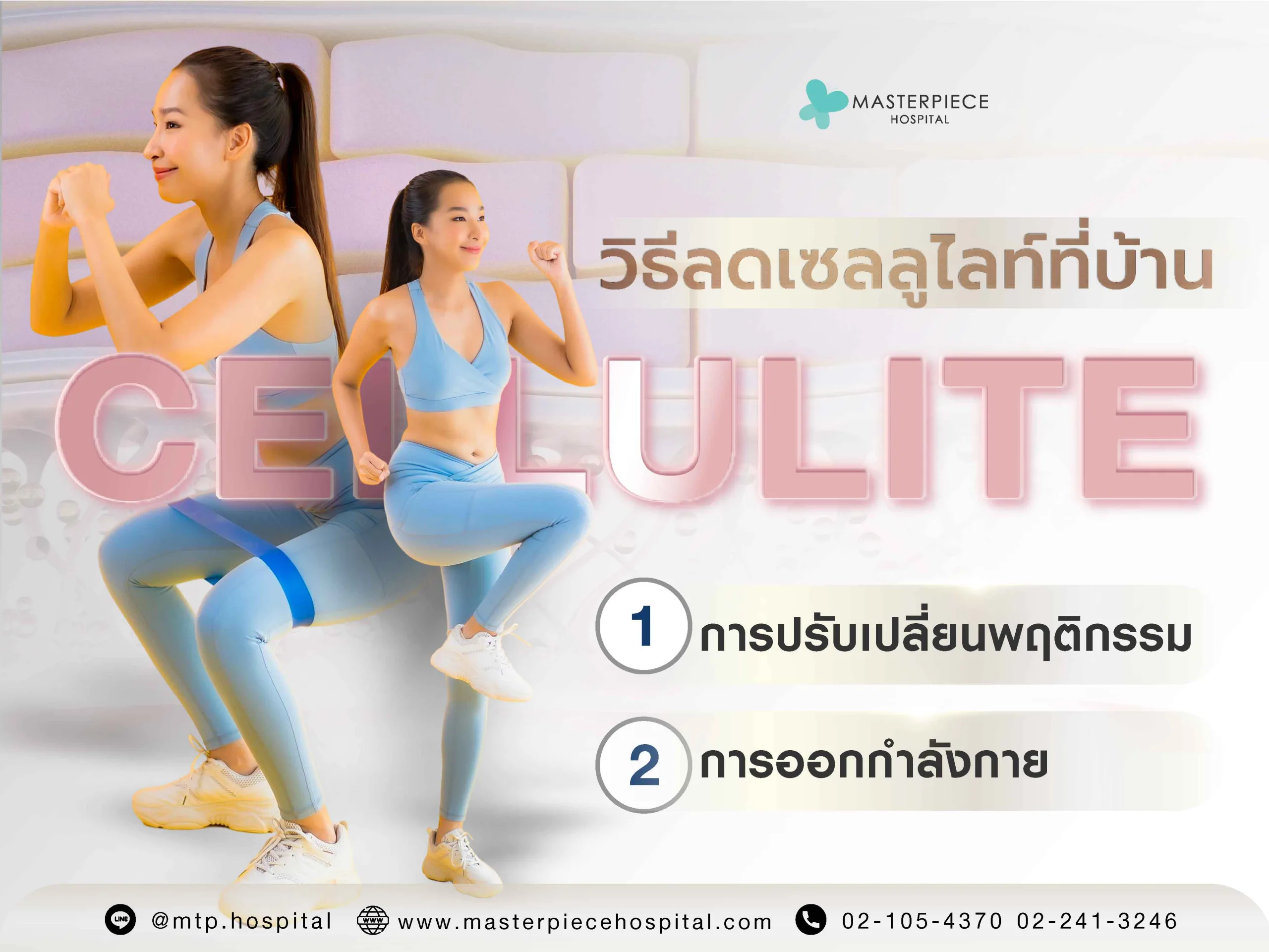 การลดเซลลูไลท์สามารถเริ่มต้นได้เองง่าย ๆ ที่บ้าน โดยการปรับพฤติกรรมควบคุมปริมาณอาหาร หรือการออกกำลังกาย ซึ่งยังมีวิธีแก้เซลลูไลท์อีกมากมายที่ช่วยให้ผิวเรียบเนียนดั้งเดิมได้ดังนี้